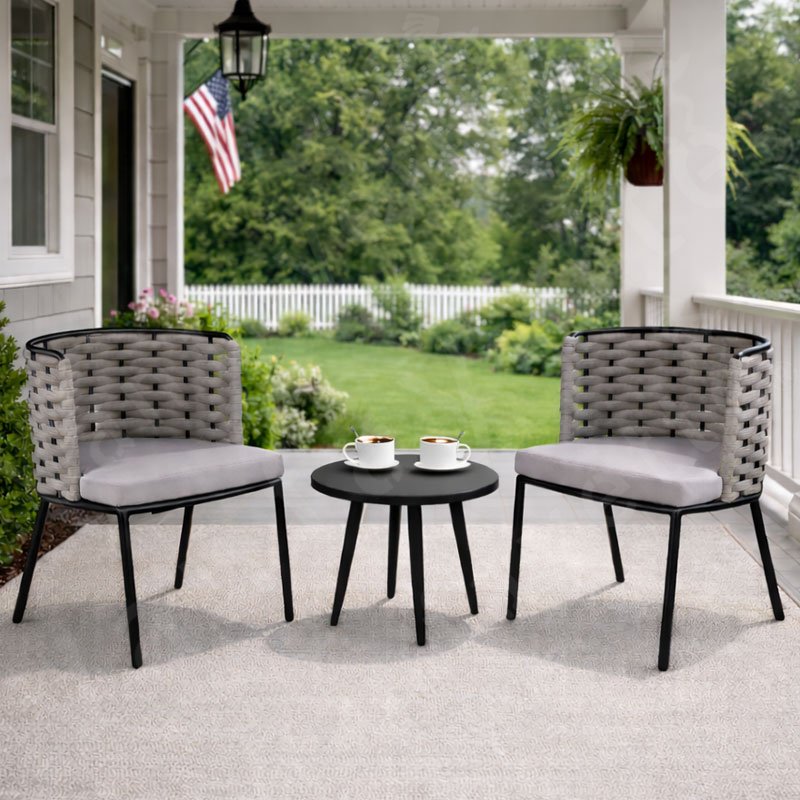 In summary, our 2 Chair And Table Outdoor Set is simple, stylish, and easy to maintain. This rope-woven duo is the ultimate solution for those small outdoor spaces that prioritize comfort and modern aesthetics. Elevate your outdoor experience today with this elegant set that perfectly blends functionality and design.
