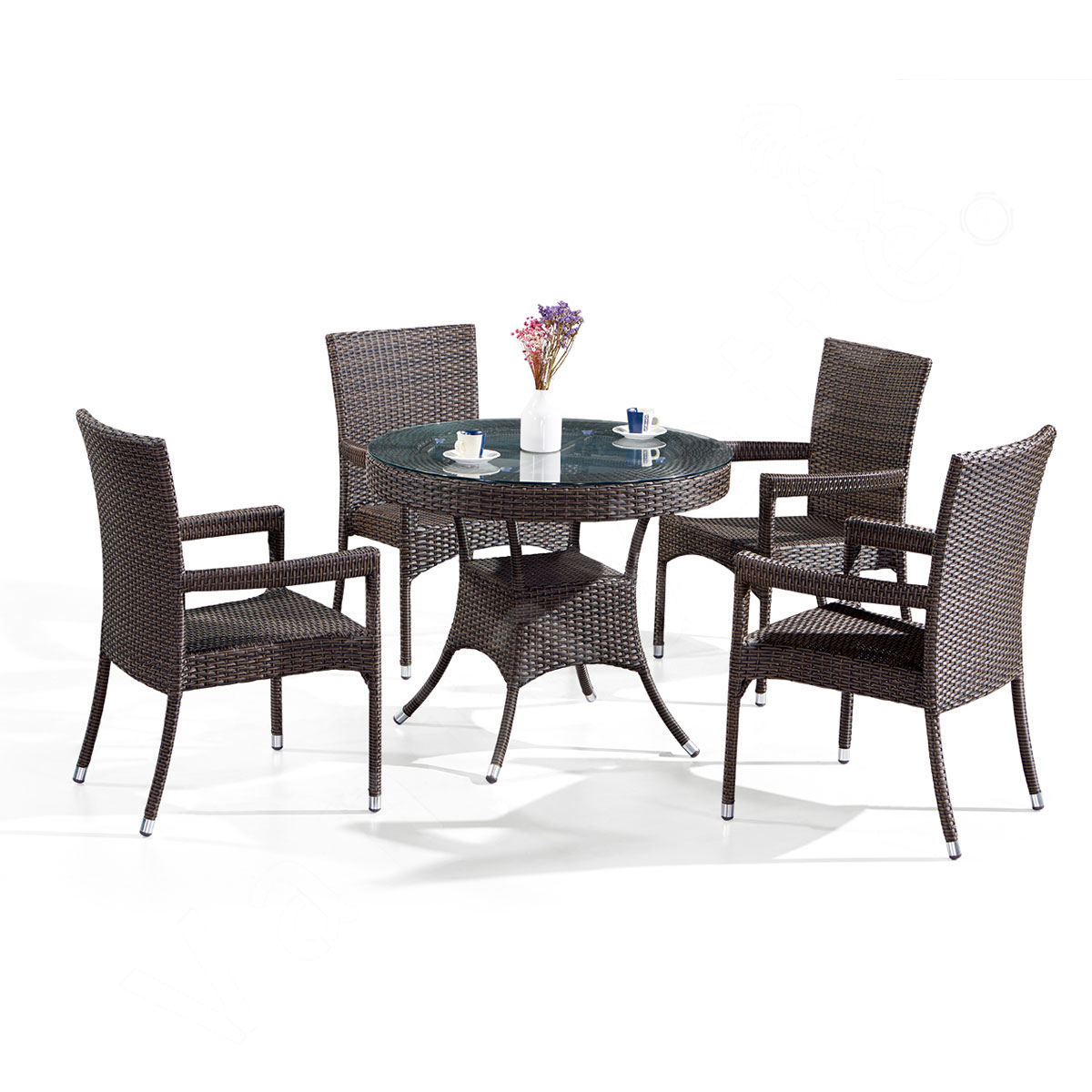 The armchair-style seating encourages relaxation without sacrificing professionalism, making it ideal for various commercial and residential settings. Enjoy casual gatherings or formal meals in style, thanks to the ergonomic armrests that provide added comfort for prolonged use. The adaptable design of this outdoor table and chairs set means that it fits perfectly in any environment, from vibrant terraces to serene backyards.