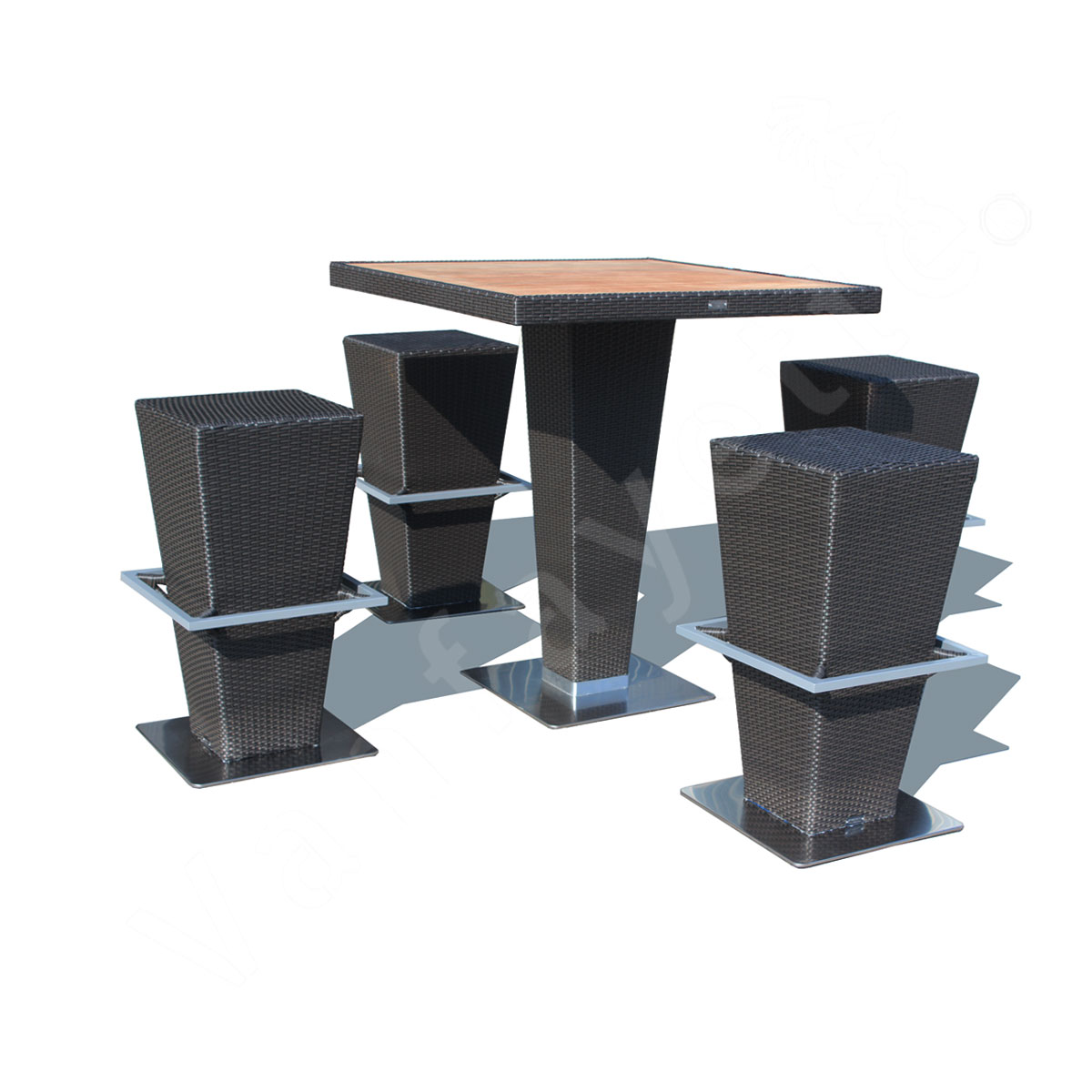 The minimalist backless design of our bar stools not only adds modern flair but also allows for easy storage and movement, making it ideal for commercial venues that require flexibility in layout. From hotel rooftop bars to restaurant terraces and private lounges, our bar set is designed to create an inviting atmosphere wherever it is placed. To ensure longevity and maintain its sleek appearance, we also offer custom-made rain covers that perfectly fit each piece, providing protective shielding from sun, rain, and dust throughout the year.
