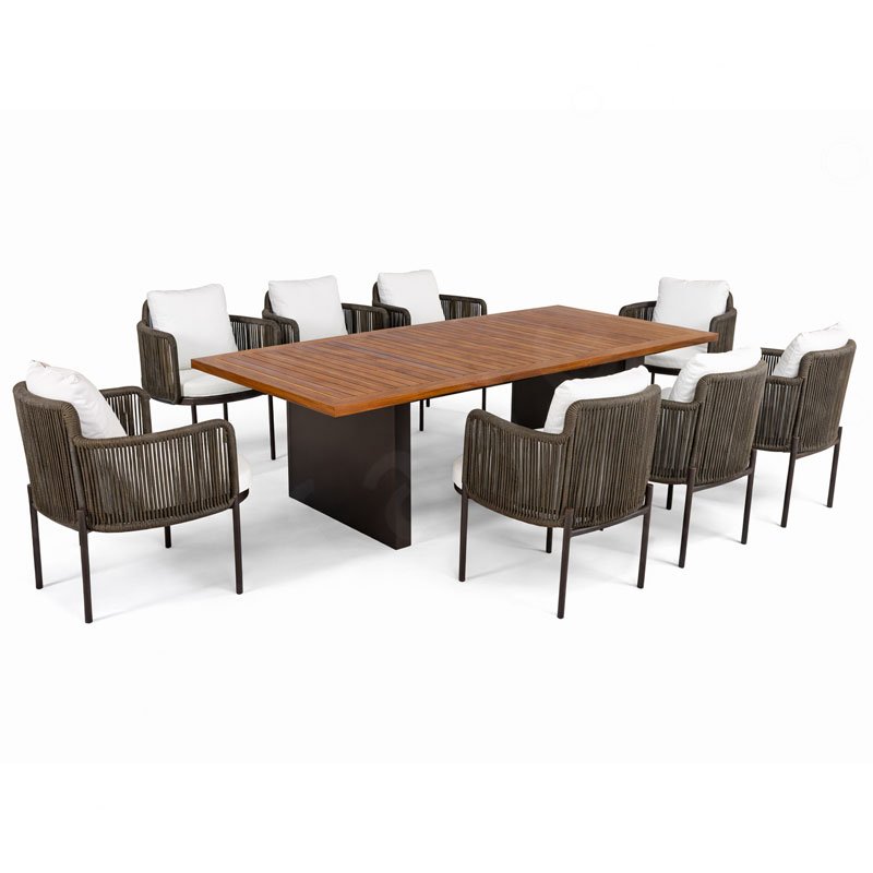 Our dining chairs feature an ergonomic design with a minimalist silhouette that provides both support and aesthetic appeal. Each chair is hand-woven with outdoor-grade rope, promoting breathability and comfort for all-day dining, making it perfect for restaurant terraces, garden cafés, and hotel patios. The material not only enhances the modern look but also ensures that every meal feels special, whether under the sun or starlit skies.