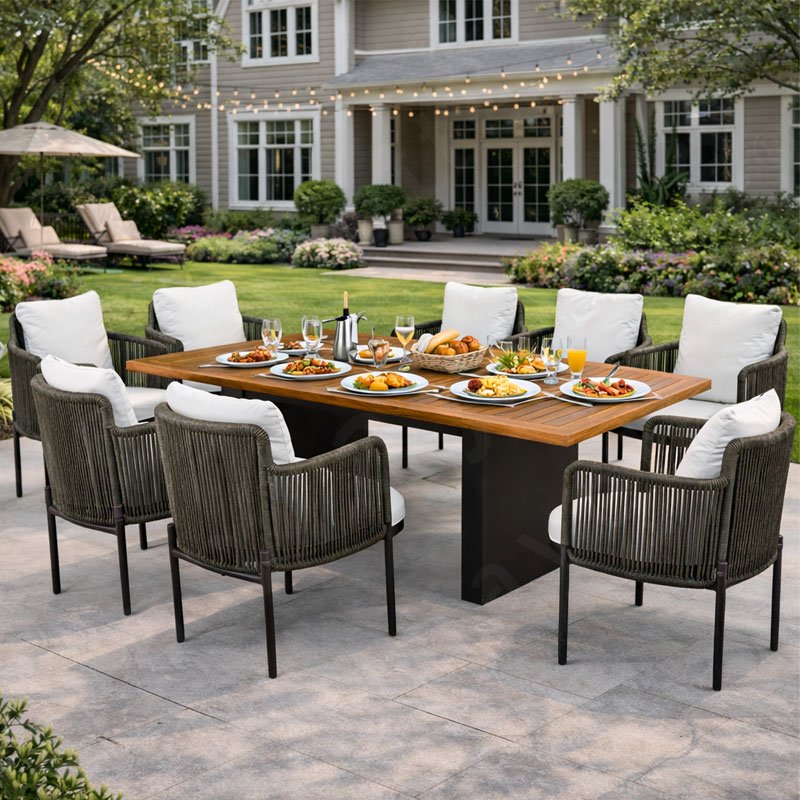 Elegant yet practical, modern yet inviting—the 6 Chairs And Table Garden set is the ideal choice for those looking to create a sophisticated outdoor dining environment. Transform your outdoor space into a haven for social gatherings and enjoy the perfect balance of style and comfort.