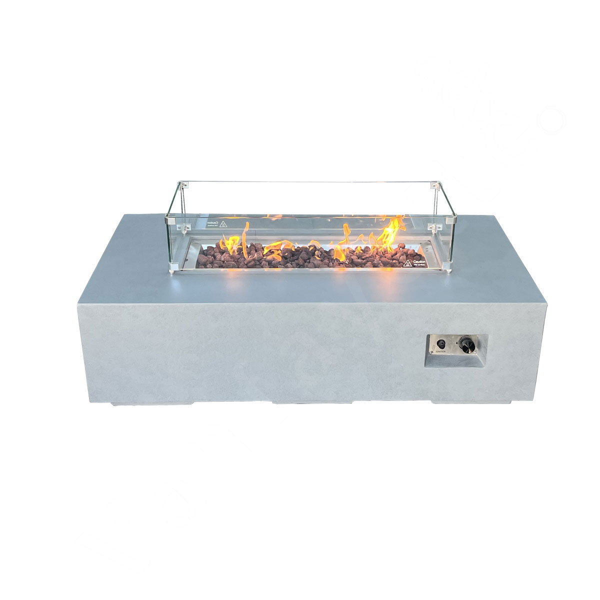 The body of the firepit is made from glass fiber reinforced concrete (GRC), ensuring excellent weather resistance and structural durability. This material provides a natural concrete finish that enhances any upscale outdoor environment. Its wide tabletop offers generous space for placing snacks, drinks, or decorative items, making it an ideal solution for both social gatherings and commercial settings.