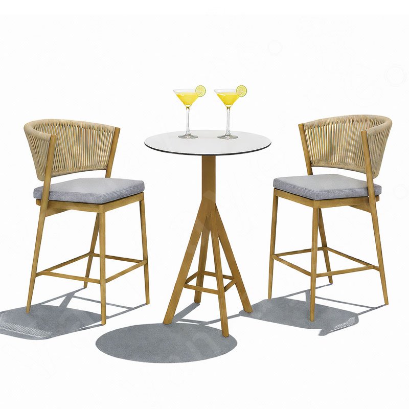 The matching bar-height table offers ample space for your drinks, snacks, or casual meals, making it the perfect centerpiece for intimate balcony lounges, serene poolside corners, or trendy café terraces. Whether hosting friends or enjoying quiet moments alone, this versatile 3-piece bar set enhances your outdoor experience. To ensure longevity, consider adding our custom rain covers, specially tailored to fit this set perfectly, helping to preserve its pristine appearance and extend its lifespan outdoors.