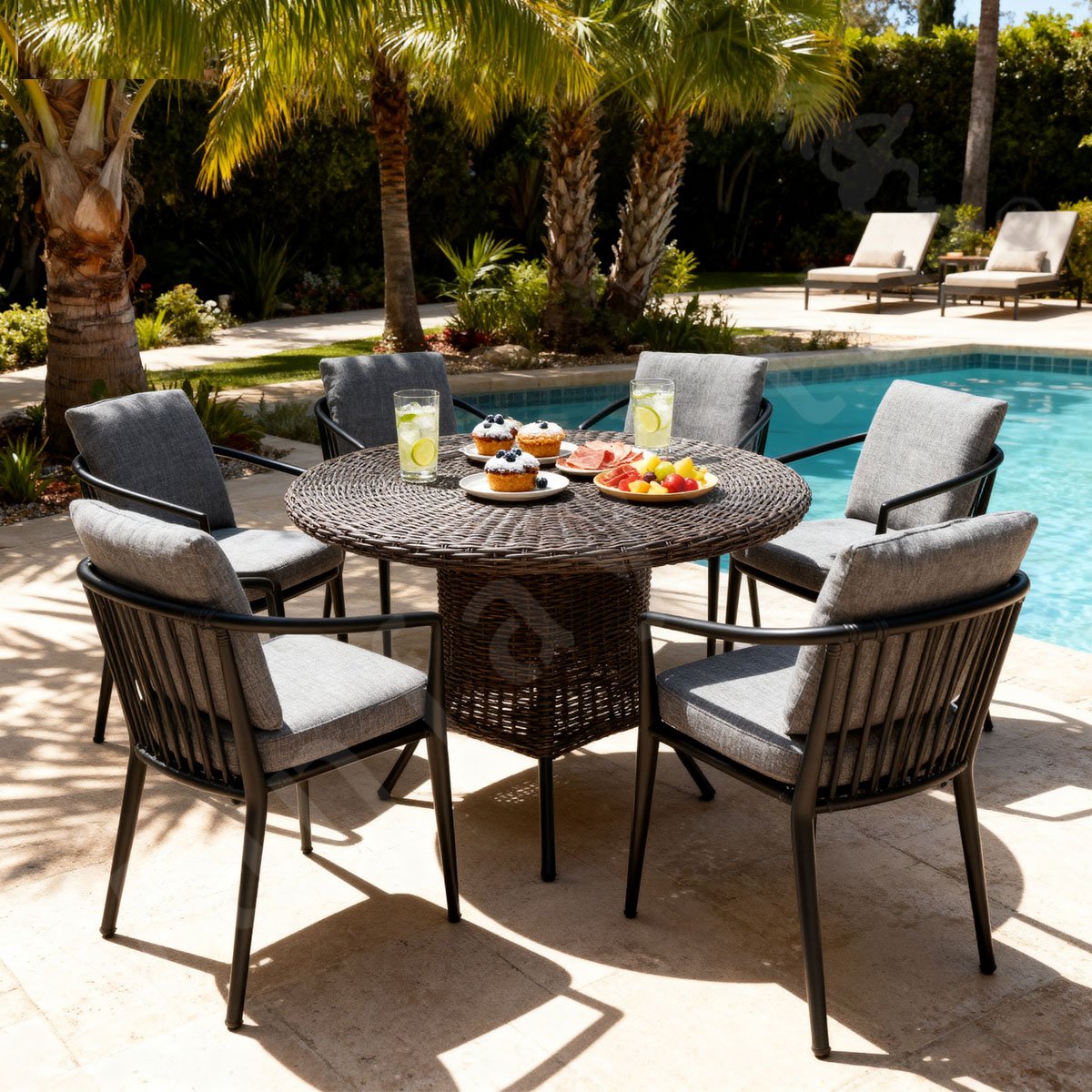 The set is not only a perfect choice for personal use but also for commercial applications, offering your business a polished aesthetic that guests and customers will appreciate. It’s the ultimate outdoor furniture ensemble that combines beauty, comfort, and practicality.