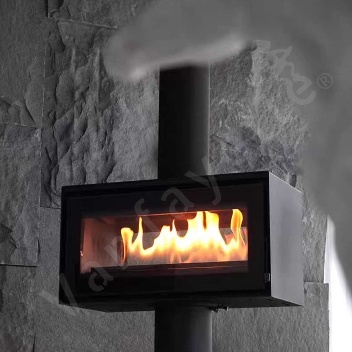 The extra-wide fire viewing windows on both sides are crafted from high-temperature-resistant ceramic glass, providing a safe, uninterrupted view of the dancing flames while enhancing ambiance from every angle. The design is minimalist yet robust, featuring clean lines and discreet air vents that preserve its architectural integrity. Whether placed in the center of a living room, a designer suite, or a modern cabin, this fireplace adds both emotional warmth and aesthetic impact.