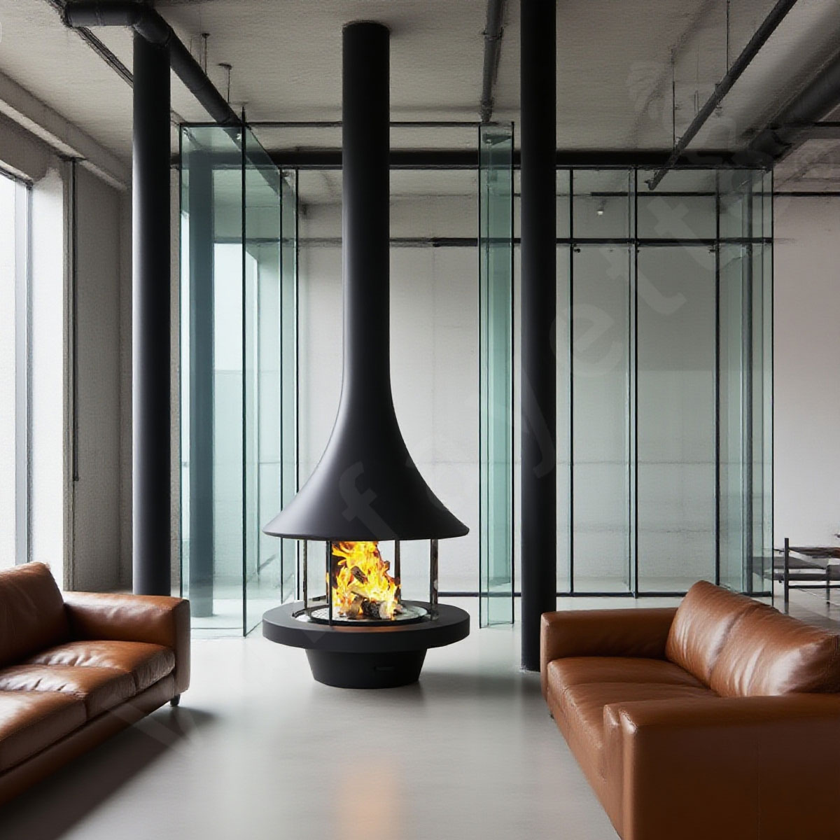 The circular indoor fireplace is more than just a heating solution; it’s a statement piece that transforms any interior into a cozy oasis. Engineered as a freestanding wood stove, it boasts exceptional heating efficiency while appealing to modern tastes with its striking aesthetic. Its unique four-sided fire view ensures the beauty of the dancing flames can be enjoyed from every corner of your room. Whether placed in open-plan living areas, lofts, chalets, or boutique hotels, this fireplace offers equal measures of warmth and visual impact.