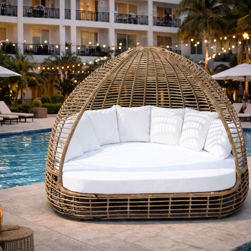 Engineered for outdoor use, all materials used—including the cushions—are UV- and moisture-resistant, providing peace of mind through changing seasons. To further extend the product’s lifespan, CG Outdoor offers tailored rain cover solutions, made to fit perfectly and keep your daybed protected from the elements when not in use. Whether you’re designing a tranquil beachfront retreat or adding functionality to a luxury patio, this round daybed with canopy offers the perfect fusion of beauty, durability, and comfort, making it an ideal centerpiece for today’s premium outdoor settings.