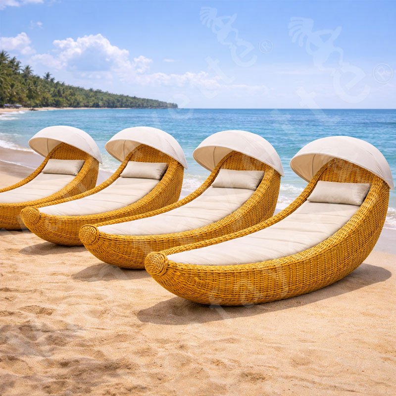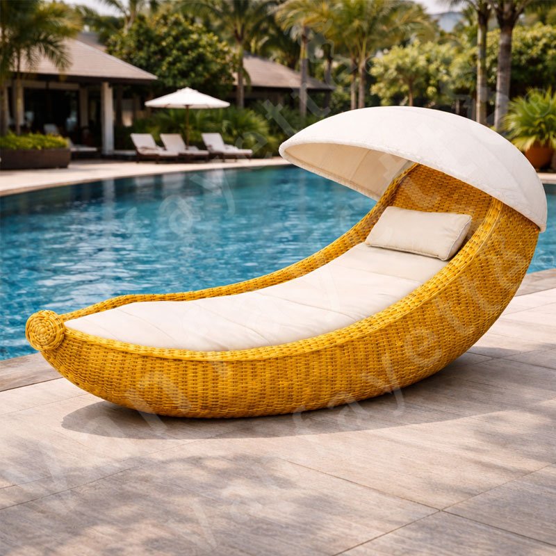 The standout banana shape not only adds an element of fun and individuality but is also designed to naturally encourage relaxation. Whether you’re sunbathing by the pool, enjoying a peaceful moment in your garden, or hosting social gatherings on your deck, this daybed seamlessly blends contemporary aesthetics with professional-grade comfort. Its integrated canopy offers partial shade and privacy, providing elevated relaxation even in sunny environments or coastal areas. The vivid yellow tone radiates warmth and energy, transforming any outdoor space into a vibrant oasis perfect for memorable experiences at boutique homestays, beachfront resorts, or luxury hotel pool decks.
